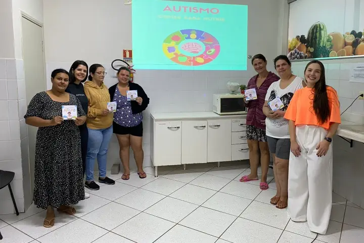Em alusão ao Dia Mundial do Orgulho Autista (18), uma data significativa que visa promover a conscientização, compreensão e aceitação do Transtorno do Espectro Autista (TEA) em todo o mundo, foi realizada uma palestra sobre o tema no Banco de Alimentos pelas estagiárias Isadora Grasso Furlan e Thais G. de Souza Speciam, do curso de Nutrição.