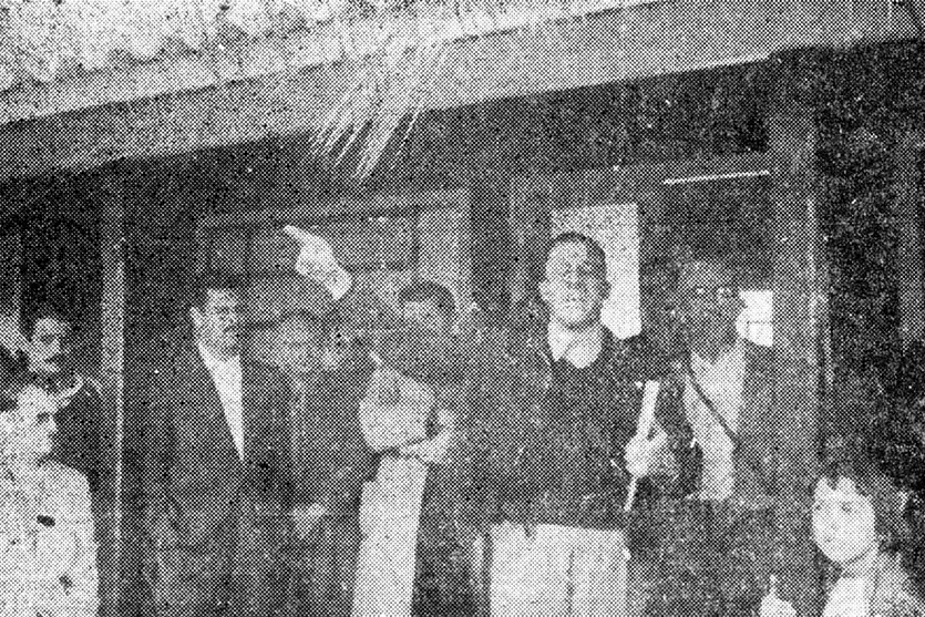 Manhã de 26 de junho de 1955 - Após as assinaturas da Ata de Fundação de Umuarama, o Dr. Hermann de Moraes Barros, presidente da colonizadora, discursa na varanda do escritório da Companhia Melhoramentos Norte do Paraná, na esquina da Rua Arapongas com Avenida Maringá (onde anos depois se instalou a Prefeitura) - Fotos: Acervo Italo Fábio Casciola