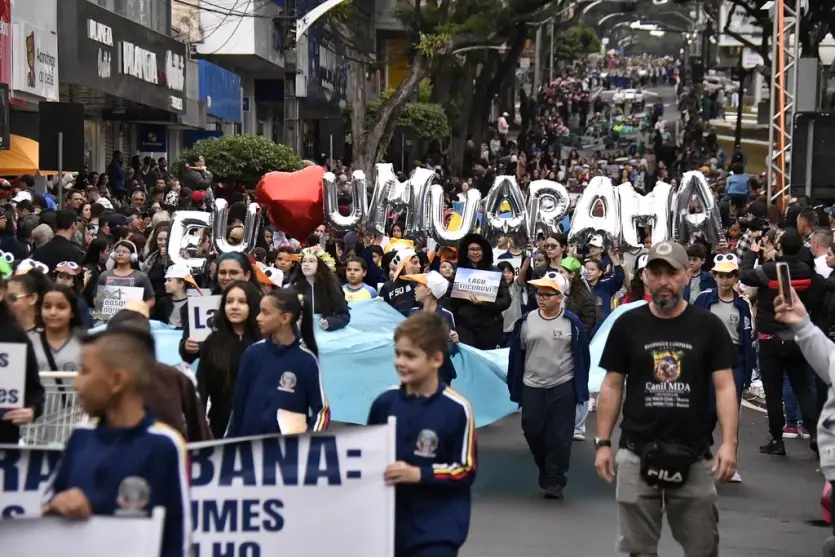 A emoção ficou mais evidente quando as crianças começaram a passar diante do público organizado em dois cordões laterais à avenida, desde a Praça Arthur Thomas até a Santos Dumont. Sob a coordenação e o olhar atento das professoras, os alunos desfilaram muitas cores, ornamentos e sorrisos. Desde 2019 Umuarama não assistia um desfile escolar.