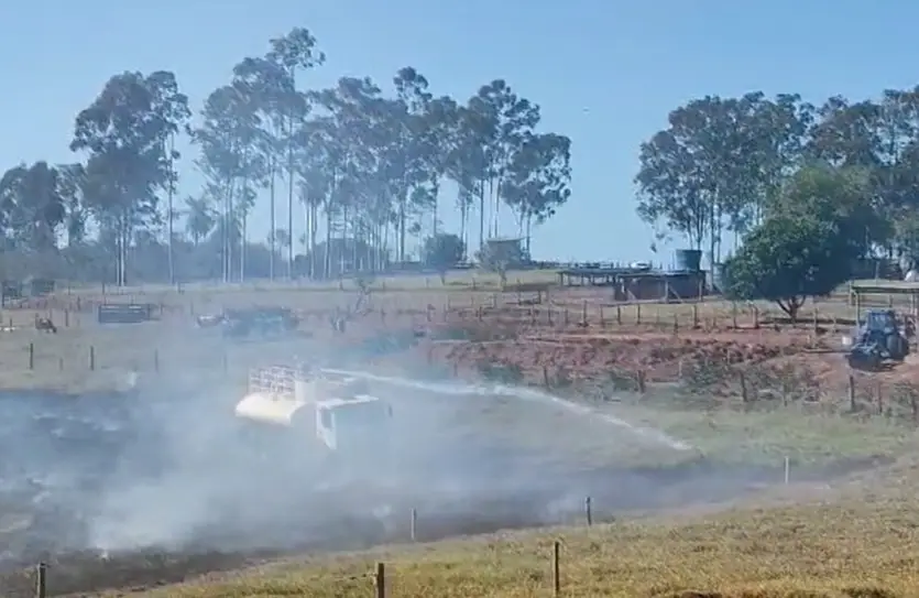 Um incêndio ambiental de grandes proporções atingiu uma área de pastagem no distrito de Lovat, em Umuarama, nesta terça-feira (2). O Corpo de Bombeiros foi acionado no início da tarde e se deslocou com um caminhão, 4 bombeiros e contou com o apoio de um caminhão pipa e uma retroescavadeira, ambos da Prefeitura, para combater as chamas.