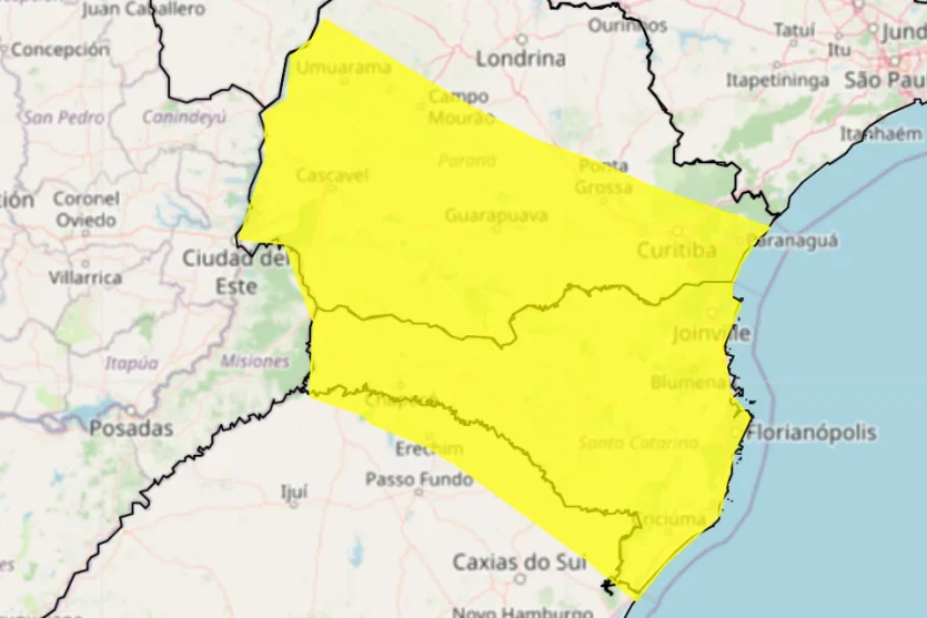 O Instituto Nacional de Meteorologia (Inmet) emitiu um novo alerta amarelo para a possibilidade de chuvas intensas nesta quinta-feira (11), abrangendo Umuarama e região. Hoje a Capital da Amizade registrou mínima de 12ºC e a máxima deve atingir 19ºC.