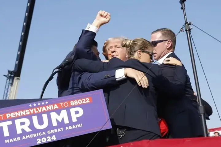 Trump foi retirado do palco em um comício após tiros serem ouvidos durante um comício na Pensilvânia. Jornalistas que estavam no local relataram que ouviram “uma série de fortes explosões ou estrondos” antes que agentes do Serviço Secreto corressem em direção a ele.