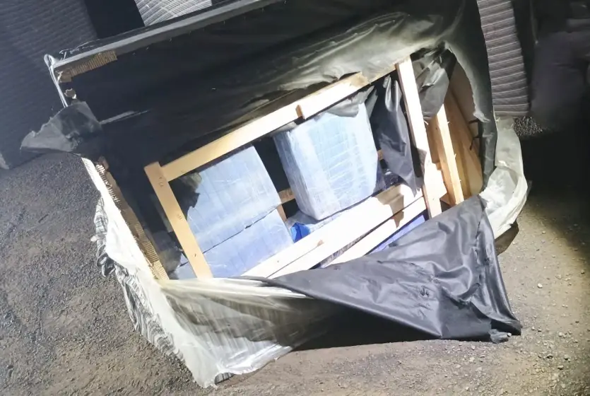 Ao notar o nervosismo do suspeito, os militares iniciaram a vistoria. Logo em seguida, encontraram os 796 tijolos da droga escondidos na estrutura dos sofás, sob os estofados.