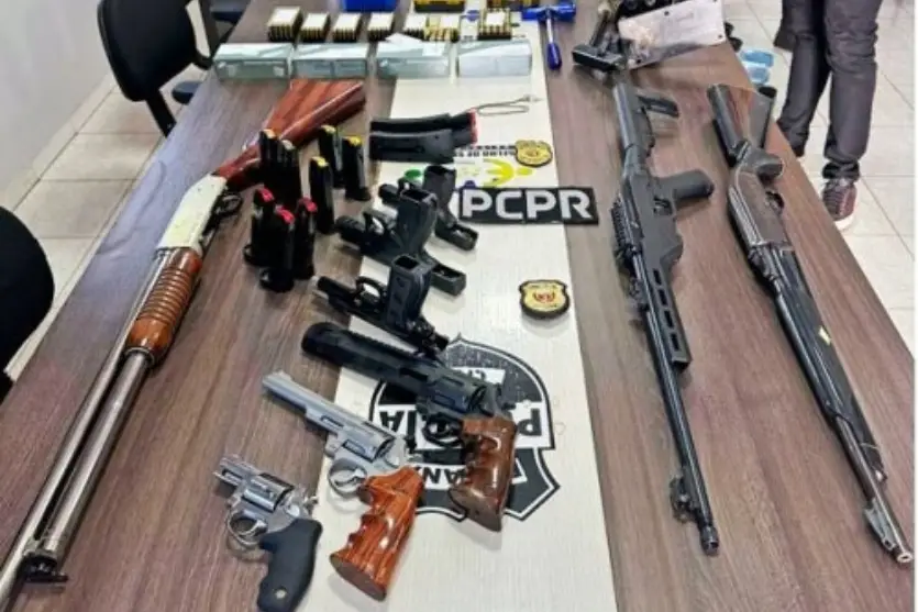 “No local, foram localizadas as armas de fogo e grande quantidade de munições de diversos calibres, incluindo 44 e 357, que são de uso restrito”, disse o delegado da PCPR André Dzindzik.