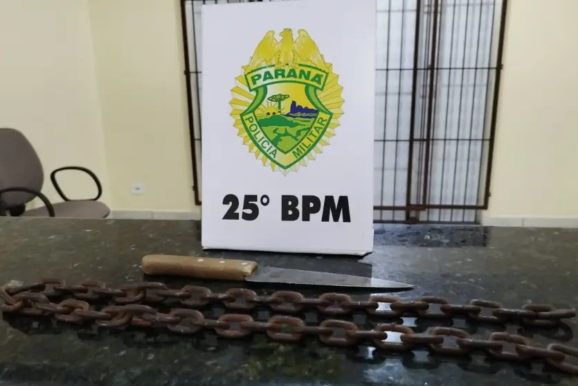 A Polícia Militar (PM) prendeu um homem, de 33 anos e nacionalidade paraguaia, que teria agredido a mulher e uma amiga dela, na noite deste sábado (20), no distrito de Cidade Nova, em Altônia. O suspeito estava armado com uma faca e uma corrente de ferro quando foi detido.