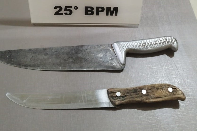 A PM foi mobilizada por populares por volta das 22h, no Parque do Bosque. Testemunhas relataram a briga em andamento onde o jovem embriagado estaria agredindo o idoso com uma faca. Os policiais foram ao endereço e conseguiram abordar os envolvidos, que estavam com facas de cozinha.