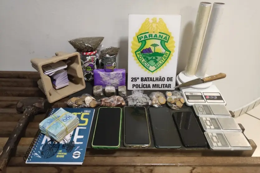 Já na residência do condutor, a equipe encontrou outras porções da droga que totalizaram 463 gramas, além de diversos objetos para fracionamento. Havia também R$ 10.025,75 em espécie, além de celulares e um caderno com anotações.