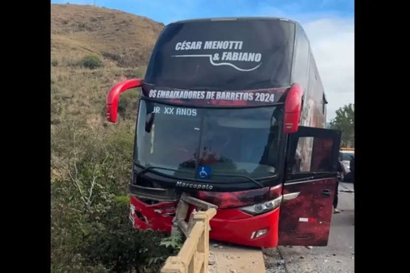 O cantor César Menotti fez uma publicação em seu perfil no Instagram falando sobre o acidente que envolveu o ônibus em que estava, junto com sua equipe, na manhã do último sábado (3). O coletivo da dupla sertaneja César Menotti & Fabiano ficou parcialmente pendurado em uma ponte na rodovia BR-262, entre São José do Goiabal e Rio Casca, na Zona da Mata Mineira.