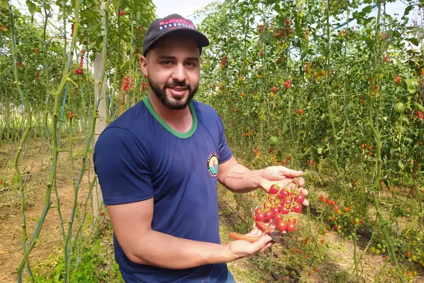 Agnaldo Lolli Júnior exibe os tomates que colhe: investimento em qualidade para ganhar destaque no mercado - Fotos: Graça Milanez/OBemdito