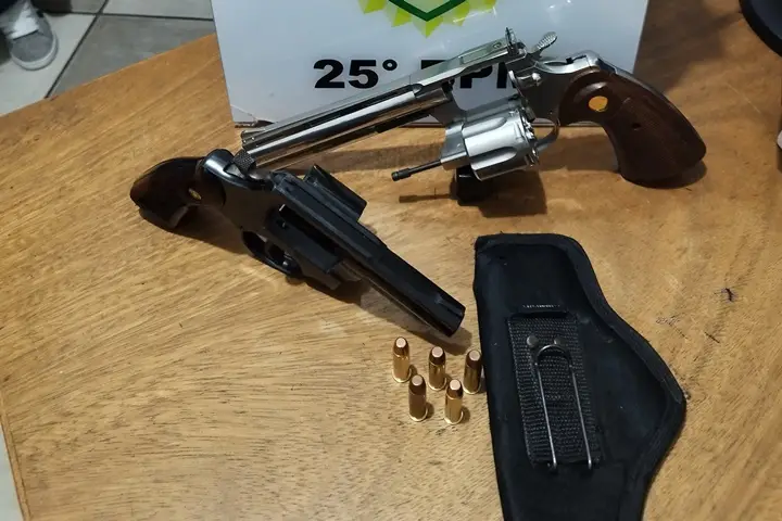 Durante a revista ao veículo, os agentes encontraram uma réplica de revólver de metal, modelo Taurus, calibre 357 Magnum. O suspeito, a arma de fogo apreendida e os demais objetos foram encaminhados à 7ª Subdivisão Policial (SDP) de Umuarama, onde o caso será investigado.