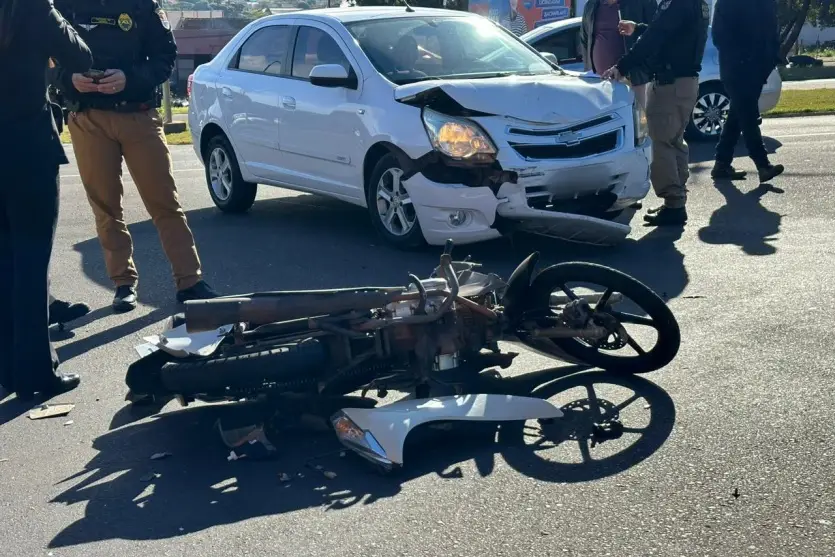 Uma condutora de Honda Biz, de 19 anos, ficou ferida em uma colisão envolvendo a motoneta e um Chevrolet Cobalt, na manhã desta terça-feira (13), em um cruzamento próximo à UEM (Universidade Estadual de Maringá) de Umuarama.