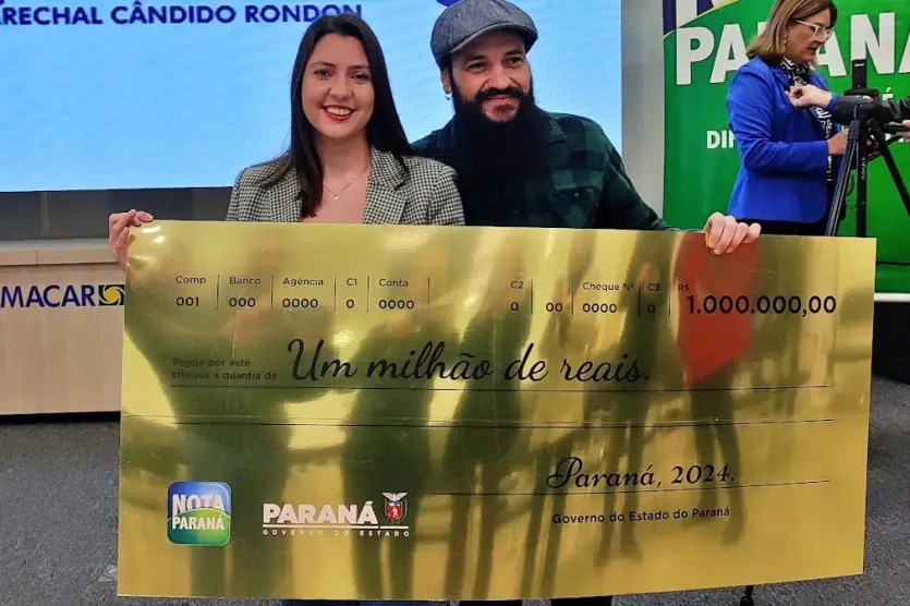 Bruna A., 29 anos, recebeu R$ 1 milhão do programa Nota Paraná na última terça-feira (13) e se tornou uma “celebridade” em Marechal Cândido Rondon, município com pouco mais de 55 mil habitantes na região oeste do Paraná. Ela foi sorteada em 8 de agosto e, desde então, a notícia tem gerado grande repercussão na cidade.