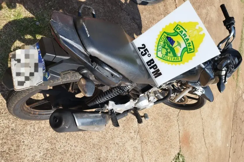 A Polícia Militar (PM) apreendeu, no fim da manhã deste domingo (18), uma motocicleta com características adulteradas na Vila Rural de Cafezal do Sul. O veículo, uma Honda CG 160 de cor preta, foi encontrado estacionado em via pública sem retrovisores e com algumas carenagens faltando, o que levantou suspeitas dos policiais.