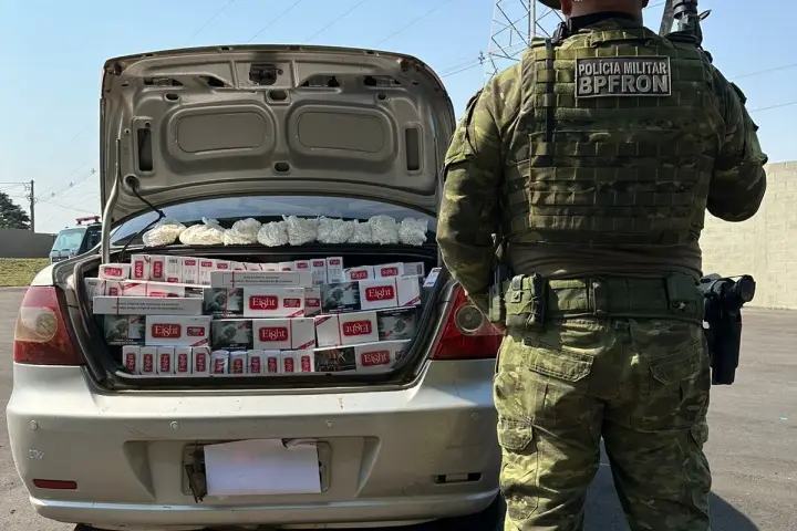 Durante a abordagem, embora o condutor não apresentasse material ilícito pessoalmente, uma inspeção no veículo revelou a presença de aproximadamente 950 pacotes de cigarros de origem estrangeira e cerca de 1,062 quilos de cocaína acondicionada em cápsulas.
