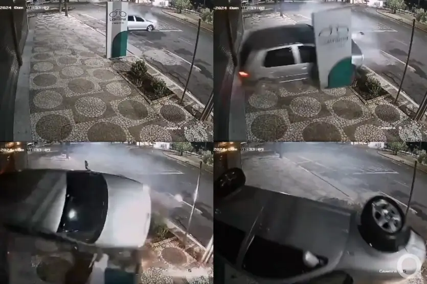 Pelas filmagens é possível ver que o acidente aconteceu à 1h33 da madrugada. O motorista seguia pela praça quando, ao que tudo indica, tentou fazer o contorno em alta velocidade e perdeu totalmente o controle do carro, que invadiu a calçada e atingiu o letreiro.