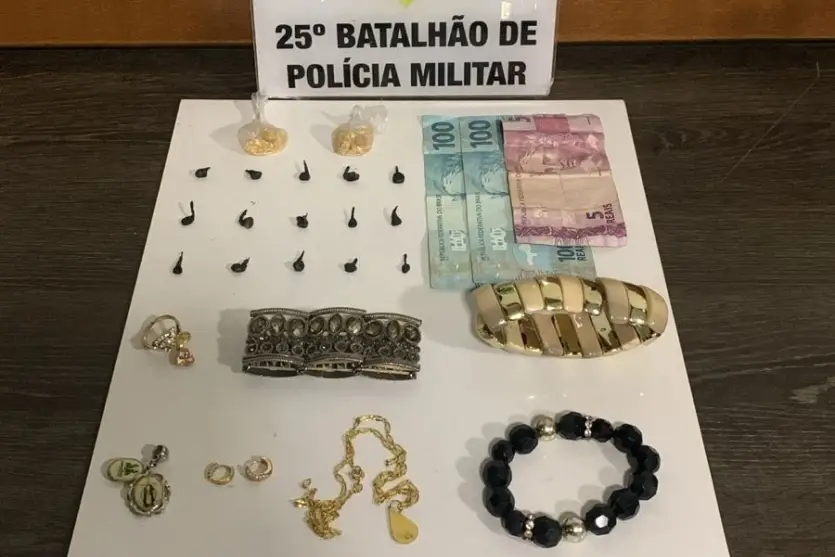 Durante a abordagem, os policiais encontraram pingentes, joias e bijuterias que coincidiam com os itens furtados. O suspeito alegou que os objetos haviam sido dados por um amigo, que ele informou a identidade porém não precisou sobre o paradeiro dele.