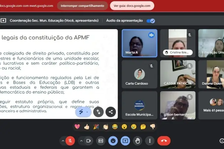 A formação foi on-line e contou com a participação de 23 diretores e cerca de 70 representantes das associações, que discutiram a importância da APMF na gestão democrática das escolas, enfatizando como o envolvimento ativo da comunidade escolar pode contribuir para a melhoria da qualidade do ensino.