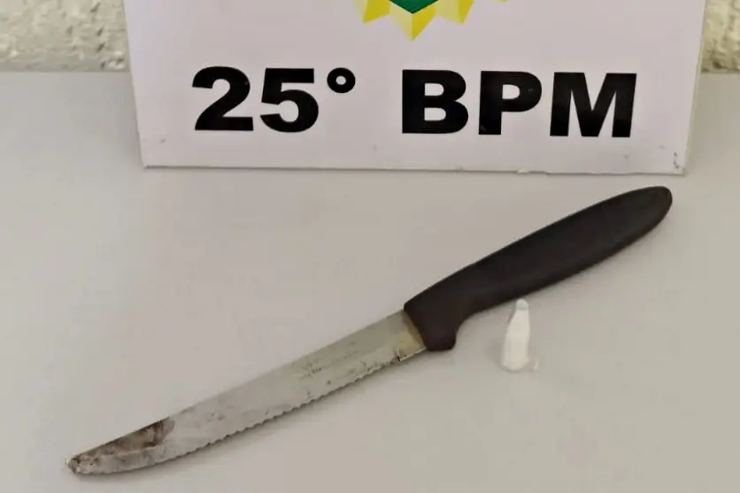 Um homem suspeito apontou uma faca para a equipe da Polícia Militar (PM) de Francisco Alves durante uma abordagem. A situação aconteceu por volta das 13h35 desta segunda-feira (2) na região central da cidade e com ele foi encontrado um pino de cocaína.