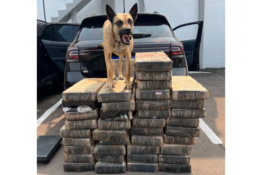 Em vistoria com apoio do cão de faro Atená, os policiais identificaram 526 quilos de maconha divididos em vários tabletes. O veículo e a carga foram entregues na Delegacia de Polícia Civil de Umuarama.