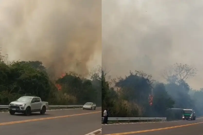 O Corpo de Bombeiros foi acionado para combater as chamas e a Polícia Rodoviária Estadual (PRE) está prestando apoio.