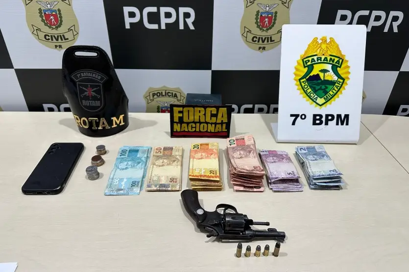 Na operação foram presos dois homens, apreendidos três menores que serão internados, foi apreendido um revólver calibre .32, além de três munições calibre .32, duas munições calibre .38, um quilo de maconha, uma balança de precisão, vários celulares e dinheiro em espécie.