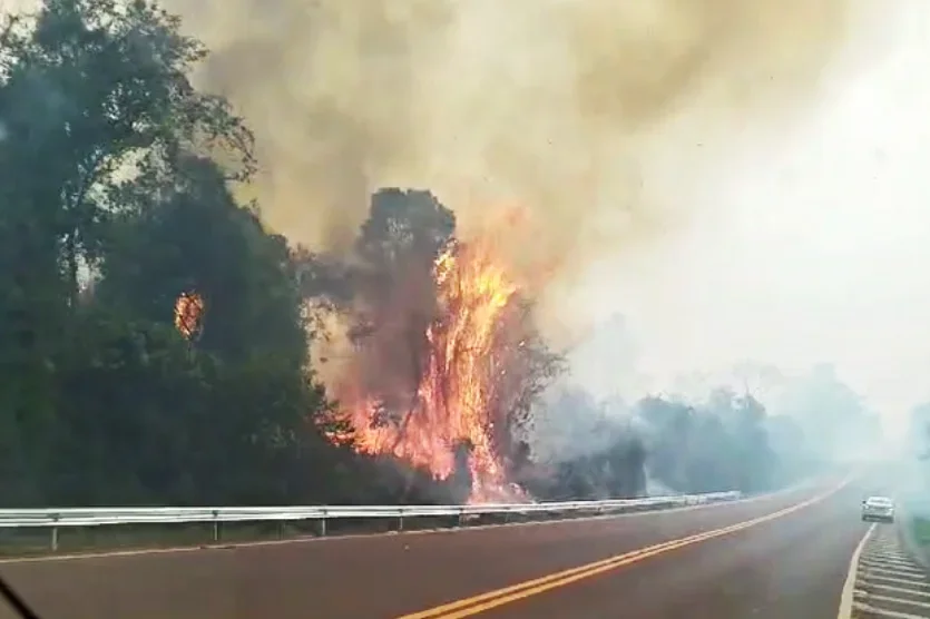 O fogo tomou conta da vegetação dos dois lados da pista. Os policiais fizeram a sinalização da via e a orientação aos condutores. Por volta das 17ho tráfego foi liberado totalmente após cessar o perigo de dano aos usuários da rodovia.