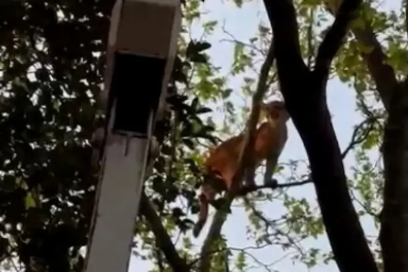 A árvore que o animal foi flagrado fica em um sítio a aproximadamente 50 metros da residência onde os donos do imóvel residem.