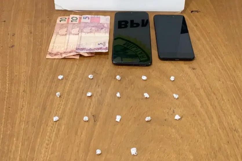 Com o segundo indivíduo, já conhecido pelos policiais por envolvimento com tráfico, foram localizadas 16 pedras de crack prontas para venda e uma quantia de R$ 25 em notas trocadas.