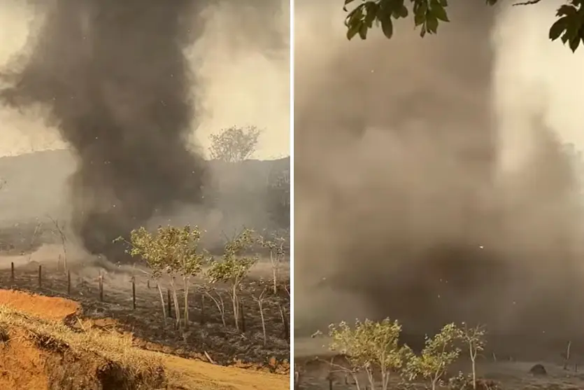 Um redemoinho de fumaça de grandes proporções chamou atenção em Mococa, cidade localizada na região metropolitana de Ribeirão Preto, São Paulo, na última quarta-feira (11). O fenômeno, resultado do calor intenso e de grandes focos de incêndio que têm atingido o interior do estado, foi avistado em uma propriedade dedicada à produção de queijo. Apesar do fogo ter consumido todo o pasto, os animais foram retirados a tempo, minutos antes de o fogo se alastrar.