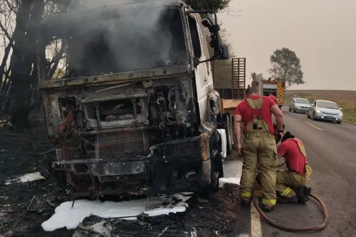 Imediatamente o motorista estacionou às margens da rodovia e desceu, junto com o operador da máquina que viajava com ele. Em seguida notou que o fogo já estava tomando conta da frente do caminhão. As labaredas se alastraram rapidamente e, apesar dos procedimentos com o extintor de incêndios, não foi possível evitar que as chamas se espalhassem pela vegetação.