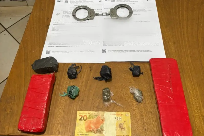 Na sequência, uma mulher que estava na residência permitiu a entrada da polícia e confirmou que o homem procurado pelo mandado estava dentro da casa. O homem, de 36 anos, foi encontrado no interior do imóvel e recebeu voz de prisão. Além disso, uma busca na casa revelou sete porções de maconha prontas para venda no quarto do suspeito, totalizando R$ 20,00 em dinheiro.