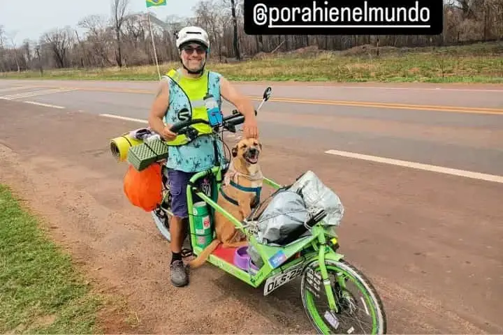 Cláudio Diaz, um argentino de 49 anos, que está em uma jornada pela América Latina de bicicleta, fez uma parada em Umuarama na semana passada. Acompanhado de sua cachorrinha Trompa, ele permaneceu na cidade por alguns dias antes de seguir viagem.