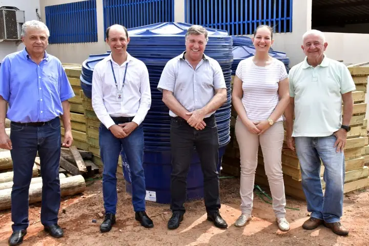 As caixas d’água e acessórios para instalação foram entregues pelo coordenador comercial na Sanepar em Umuarama, Rafael Sereia Pires, ao prefeito Celso Pozzobom e à secretária da Assistência Social, Dayanne Paola Demozzi, no pátio da Prefeitura, com a participação do secretário de Serviços Rodoviários, Mauro Liutti, e do diretor da Secretaria de Serviços Públicos, José Guimarães de Melo.