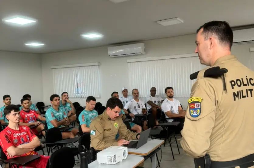 A Polícia Militar (PM) está realizando a segunda fase do ‘Projeto Mulher Segura: De homem para homem’. Os jogadores da Associação de Futsal de Umuarama participaram de uma palestra que enfatizou a importância da segurança e do respeito às mulheres na sociedade.