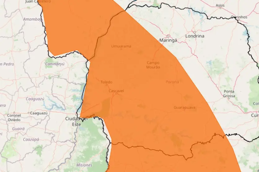 O Instituto Nacional de Meteorologia (Inmet) emitiu, nesta quinta-feira (26), um alerta laranja para tempestades na região de Umuarama, abrangendo parte do Rio Grande do Sul, Paraná, Santa Catarina e Mato Grosso do Sul. O aviso entrou em vigor às 10h de hoje e vai até às 10h desta sexta-feira (27).