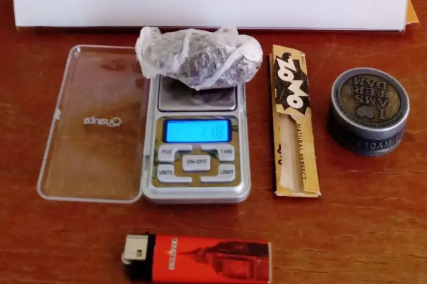 A dupla foi abordada. Durante buscas, os policiais encontraram 11,8 gramas do entorpecente, um dichavador e uma embalagem de papel seda no bolso da roupa do homem de 27 anos.