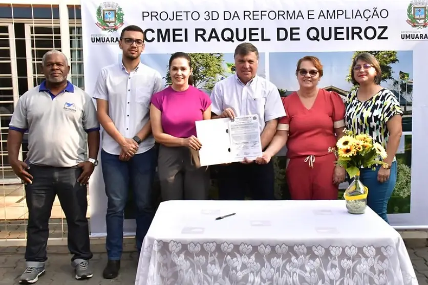 Mais um grande investimento em infraestrutura para a educação foi confirmado na última terça-feira, 1º, pelo prefeito Celso Pozzobom e pelo secretário de Obras, Planejamento Urbano e Projetos Técnicos do município, engenheiro Renato Caobianco. Junto com a secretária da Educação, Mauriza de Lima Menegasso, eles assinaram a ordem de serviço para a reforma e ampliação do Centro Municipal de Ensino Infantil (CMEI) Rachel de Queiroz, no Parque Dom Pedro I.