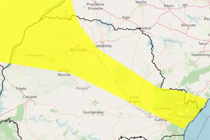 O Instituto Nacional de Meteorologia (Inmet) emitiu nesta quinta-feira (3), um novo alerta amarelo para tempestades abrangendo parte do Paraná, incluindo Umuarama e municípios vizinhos. O aviso entra em vigor às 12h de hoje e vai até às 10h desta sexta-feira (3).