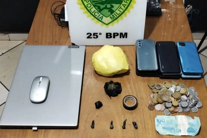 A Polícia Militar (PM) apreendeu, na noite desta quinta-feira (3), porções de maconha, cocaína, eletrônicos e dinheiro em uma residência que seria utilizada para venda de drogas, no Parque 1º de Maio, em Umuarama. A ação também resultou na prisão de dois homens, de 35 e 36 anos.