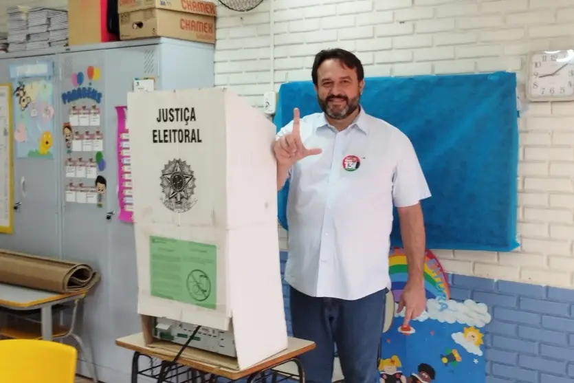 O candidato à Prefeitura de Umuarama, Luciano Machado (PT), compareceu, pouco antes das 9h da manhã, para votar na Escola Municipal Malba Tahan, em Umuarama. Ele foi ao colégio eleitoral acompanhado de seu vice Macarrão, da candidata a vereadora professora Betty, assessores e membros do Partido dos Trabalhadores e do coordenador Edilson Gabriel.