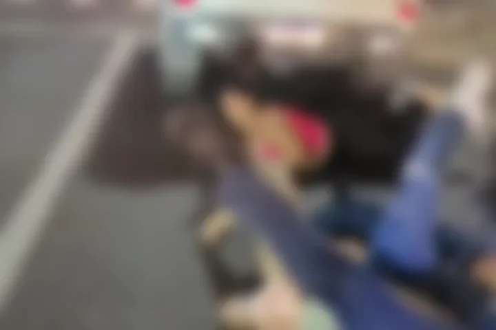No vídeo, que foi gravado por um motociclista, é possível observar que o veículo está parado no sinal vermelho. Quando o sinal abre, a caminhonete arranca, provocando a queda das pessoas que estavam distraídas.