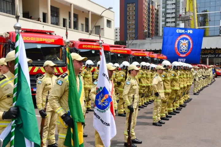 O Corpo de Bombeiros Militar do Paraná (CBMPR) completou 112 anos nesta terça-feira (8) com solenidade militar no Quartel do Comando-Geral (QCG), em Curitiba. O evento também foi marcado pela entrega de 12 novos veículos à Corporação e pela homenagem do CBMPR a 25 personalidades civis e militares. Participaram representantes das forças de segurança do Paraná, do Governo do Estado, da Assembleia Legislativa e do Poder Judiciário.