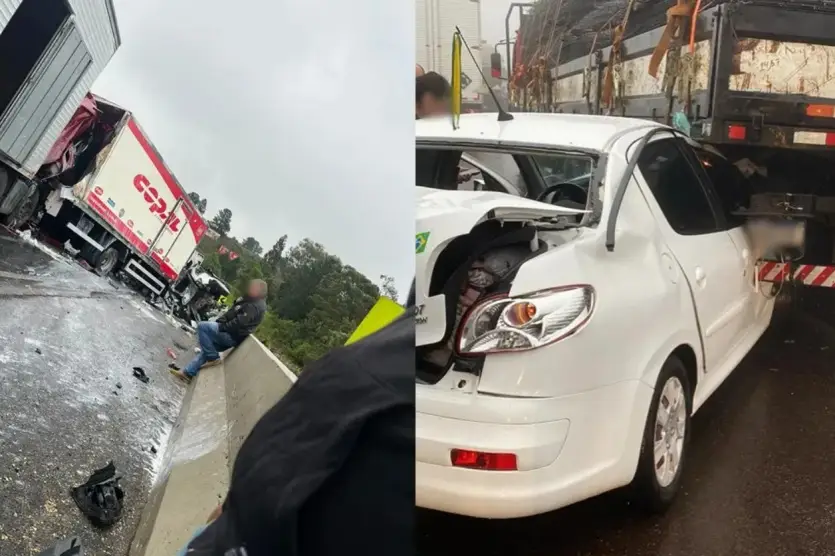 A Polícia Rodoviária Federal (PRF) confirmou a morte de um motorista de 57 anos em um acidente na BR-277, em Balsa Nova, região de São Luiz do Purunã, na manhã desta quinta-feira (10). A vítima conduzia um bitrem, cuja cabine foi completamente destruída pelo impacto. O acidente, ocorrido a cerca de dois quilômetros da praça de pedágio, envolveu ao menos quatro carros de passeio e oito caminhões.