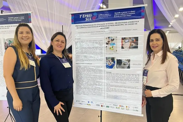 A secretária e as coordenadoras da Secretaria de Educação de Umuarama expuseram os trabalhos ‘Práticas Pedagógicas na Educação Integral – Robótica no currículo das escolas integrais da rede municipal de ensino de Umuarama’ e também ‘Política de Educação Integral na Rede Municipal de Umuarama – Princípios e Desafios’, onde abordam os pressupostos históricos e legais que nortearam a construção da política de educação em tempo integral no município e também as práticas pedagógicas realizadas a partir da robótica nas escolas integrais da cidade.