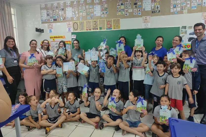 Por meio de uma parceria com a empresa Nutriphós, a Secretaria Municipal de Educação realizou, nesta terça-feira (15) uma ação solidária na Escola Municipal Padre José de Anchieta, em comemoração ao Dia do Professor. A iniciativa beneficiou crianças do infantil 5 e alunos do 1º ao 3º ano, que receberam cartilhas educativas e lápis de cor fornecidos pela empresa.