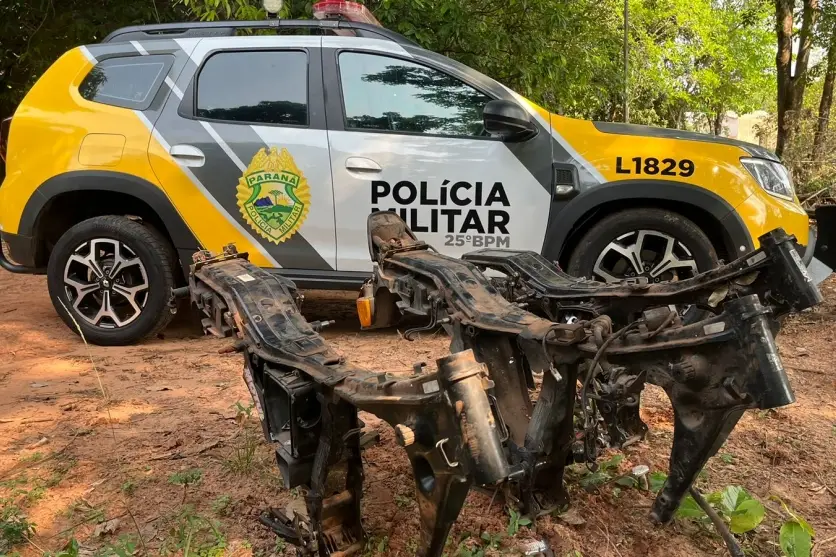 A Polícia Militar (PM) de Umuarama localizou na tarde desta quarta-feira (16) três quadros de motocicletas perto de uma chácara nas imediações do Parque Jabuticabeiras. O 25º Batalhão (BPM) recebeu uma solicitação anônima para comparecer no local, pois segundo o solicitante havia quadros de motocicletas abandonados.