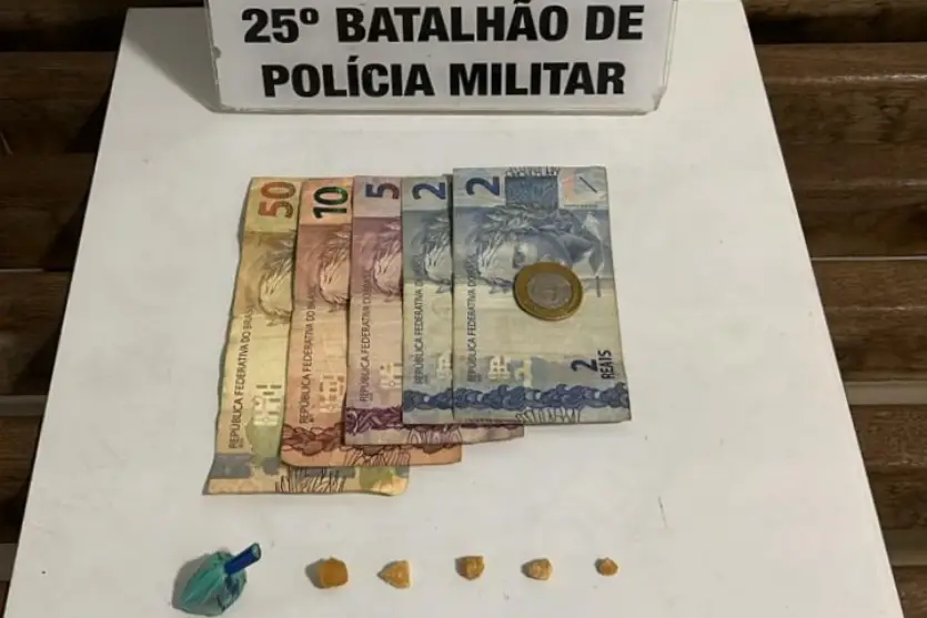 A ocorrência foi registrada às 19h30. A equipe policial realizava um patrulhamento pela Zona II da cidade quando avistaram duas pessoas em atitude suspeita. Um deles, ao perceber a viatura, tentou se desfazer de um objeto jogando-o ao solo. Após a abordagem, os militares encontraram uma quantia em dinheiro com o suspeito, que deu explicações contraditórias sobre a origem.