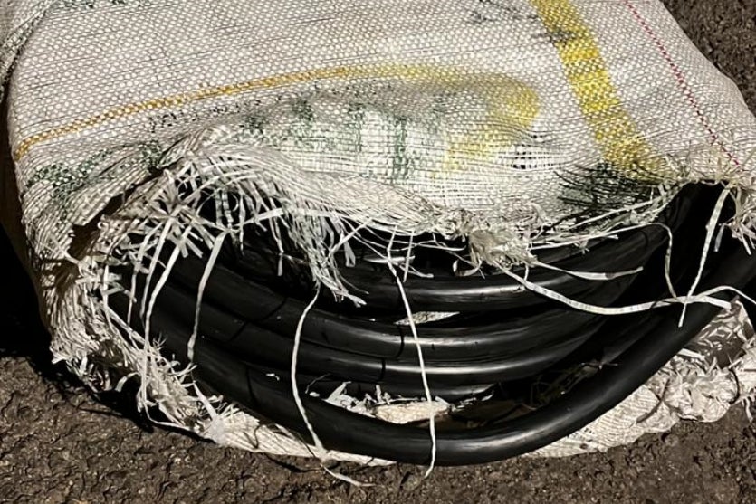 Ele estava carregando um saco com aproximadamente 18 quilos de fios elétricos furtados, além de portar uma faca de serra utilizada para cortar o material
