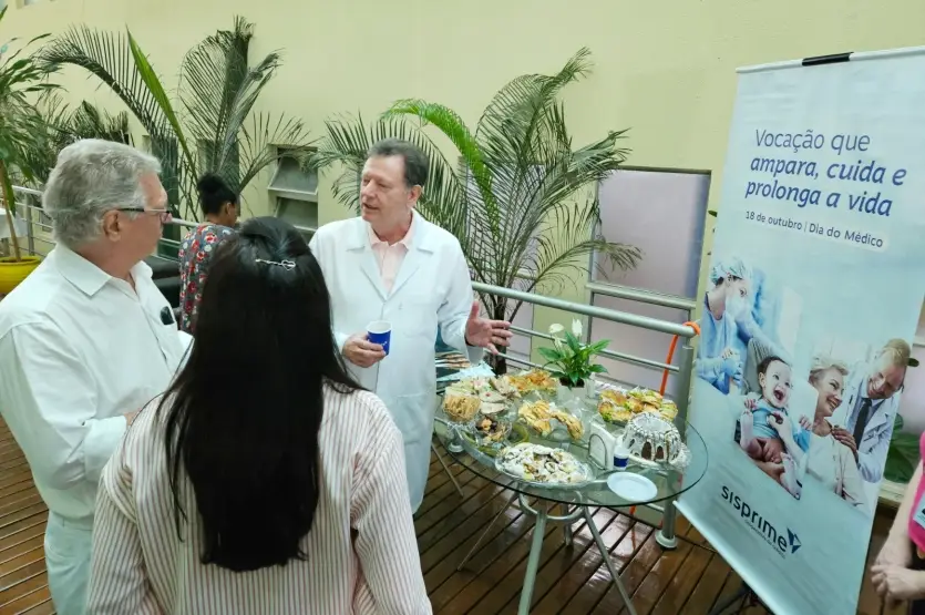 O café da manhã foi oferecido pela Cooperativa Sisprime e contou com um buffet variado, preparado para proporcionar um momento de descontração e interação entre os médicos. Os presentes aproveitaram a ocasião para trocar experiências e celebrar o Dia do Médico em um ambiente acolhedor e de união.