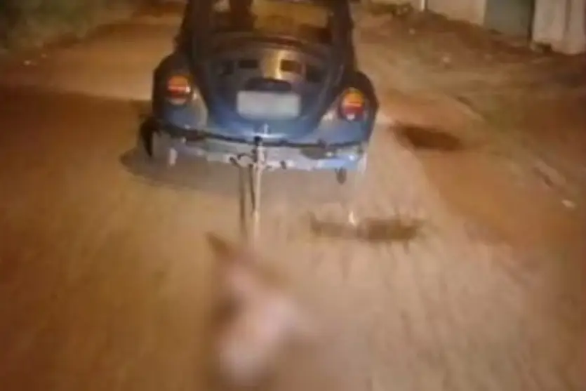 Um vídeo que circula nas redes sociais mostra um cachorro sendo arrastado por um carro, na noite deste sábado (19), em Jaguariaíva, na região dos Campos Gerais do Paraná. As imagens capturam o momento em que um Fusca azul arrasta o animal.
